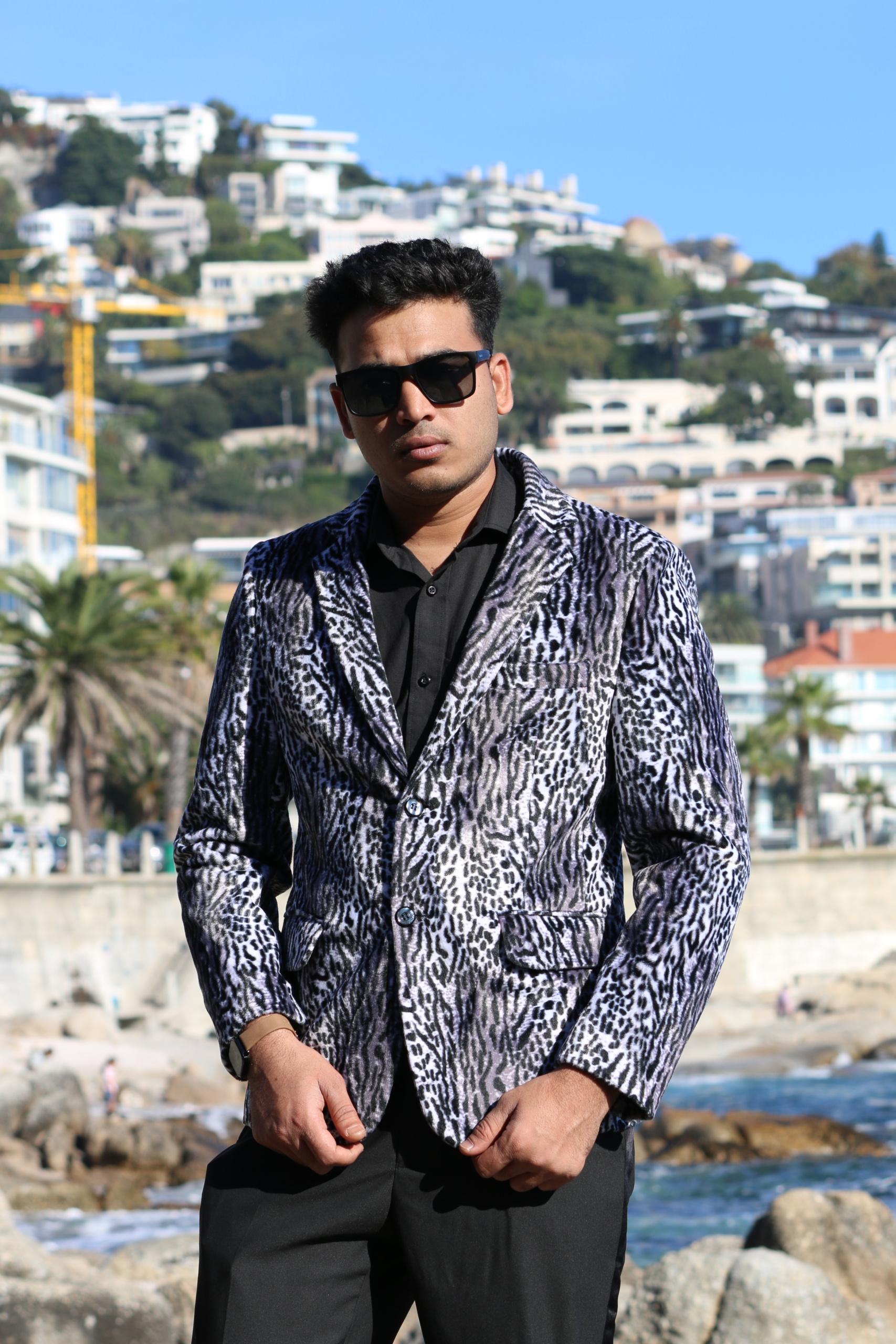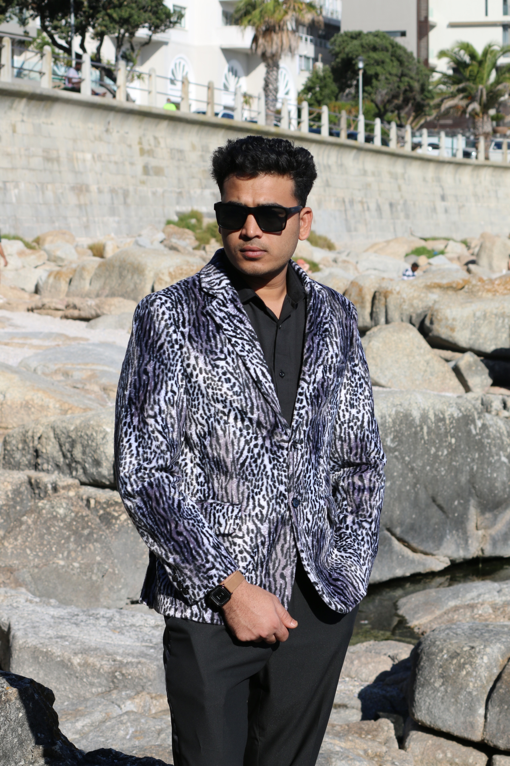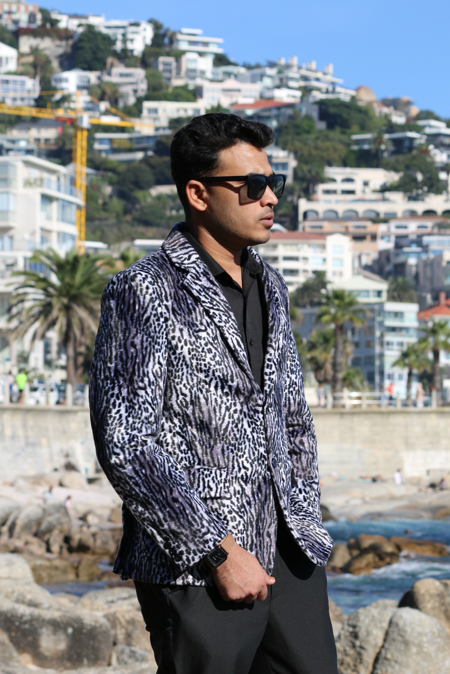 The Apex Snow Leopard Velvet Suit is a definitive statement in modern luxury, handcrafted to elevate your evening or event wear. Inspired by the sleek, untamed beauty of the wilderness, this custom blazer features a compelling monochromatic snow leopard print on a premium, plush velvet fabric that catches the light with a soft sheen. Every item is made-to-measure through a meticulous tailoring process in our Cape Town studio, ensuring an impeccable slim modern fit that molds perfectly to your physique. The design includes a notched lapel, two-button closure, and practical flap pockets. As a Smart Tailor client, you can customize details like the lining color, button style, and pocket configuration, resulting in a truly unique garment that blends our exceptional craftsmanship with your personal vision.